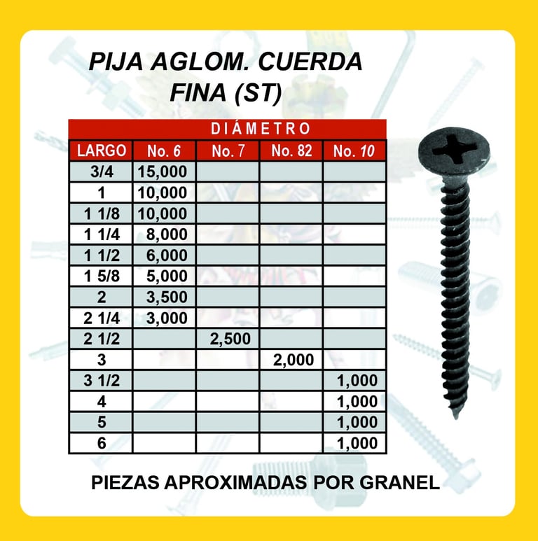La pija para tablaroca (también conocida como tornillo para yeso o drywall) es un elemento de fijación esencial diseñado con una cabeza cónica para hundirse al ras de la superficie sin romper el cartón del panel.
