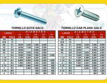 Tornillo Estufa cabeza Gota ó Plana