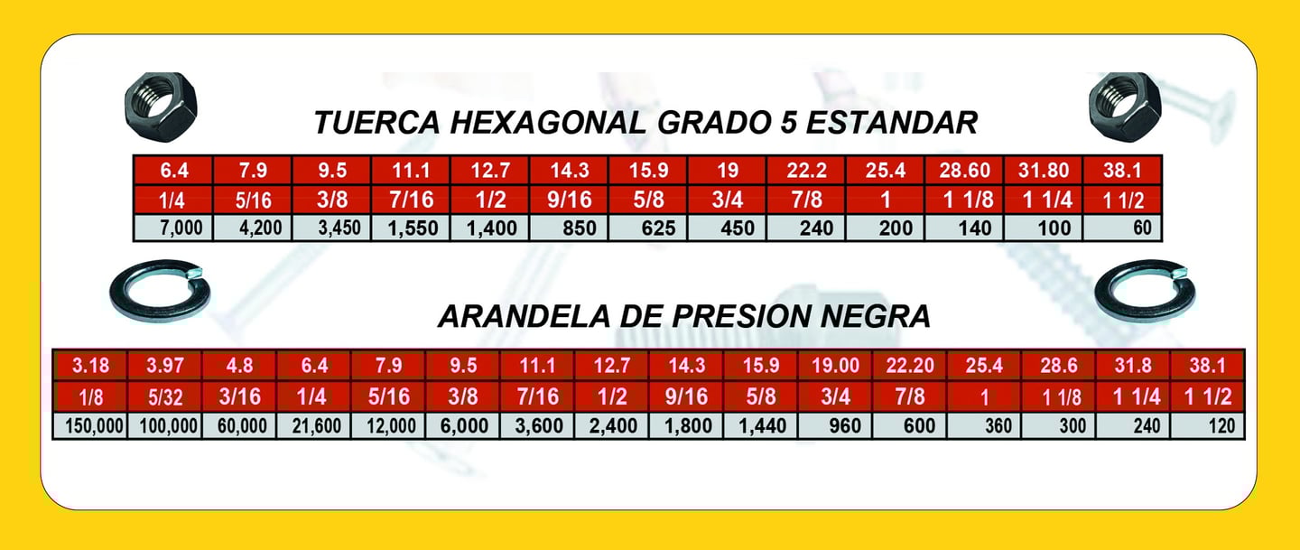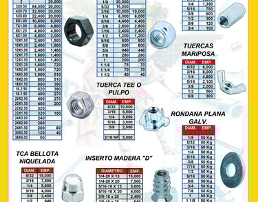Roscas: Disponibles en rosca estándar (UNC) para aplicaciones generales y rosca fina (UNF) para ensambles que requieren mayor precisión o resistencia a la vibración.